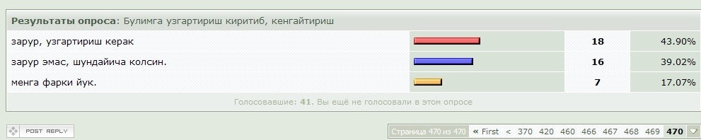 Гость ака_Учкун Опубликовано 20 Декабря 2011 Поделиться Опубликовано 20 Декабря 2011 А вот и доказательство, какие-такие "многие" там пожелали оставить все как есть))) Непонятно только, зачем запускать голосование, если результаты игнорировать.... Снято прямо сейчас.... Первый пункт - за изменения, второй пункт - оставить все как есть, третий пункт - безразличные...... Цитата Ссылка на комментарий Поделиться на других сайтах Прочее